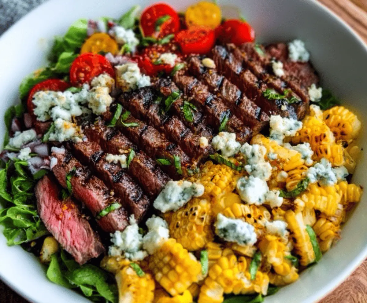 Balsamic Steak Salad with Gorgonzola and Grilled Corn